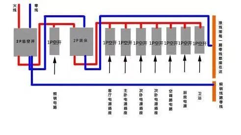 现在家居用电应按照明回路,空调回路,电源插座回路分开布线,其中一个回路出现故障时其他回路还可以正常供电,而插座回路则需要安装漏电保护装置,以免引发触电危险。