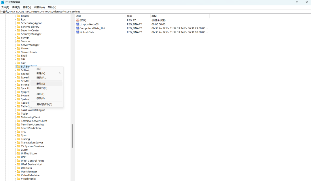 找到并鼠标右键[SLP Services],点击[删除]